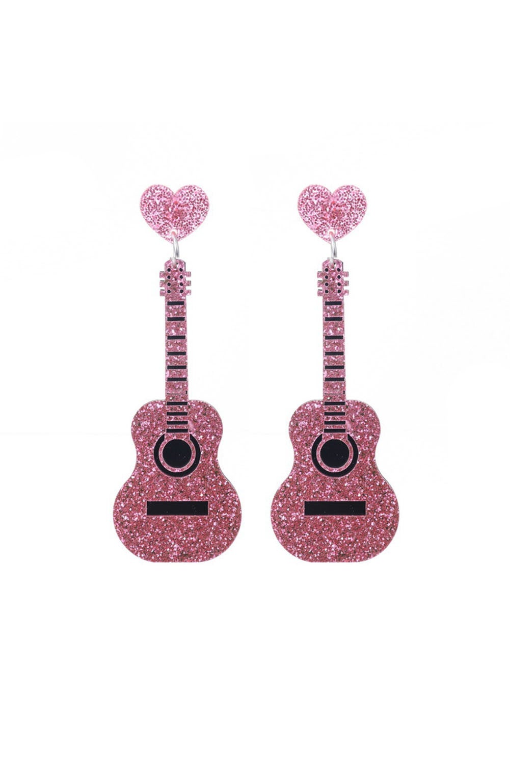 Pink Shiny Guitar Love Music Festival Heart Stud Earrings